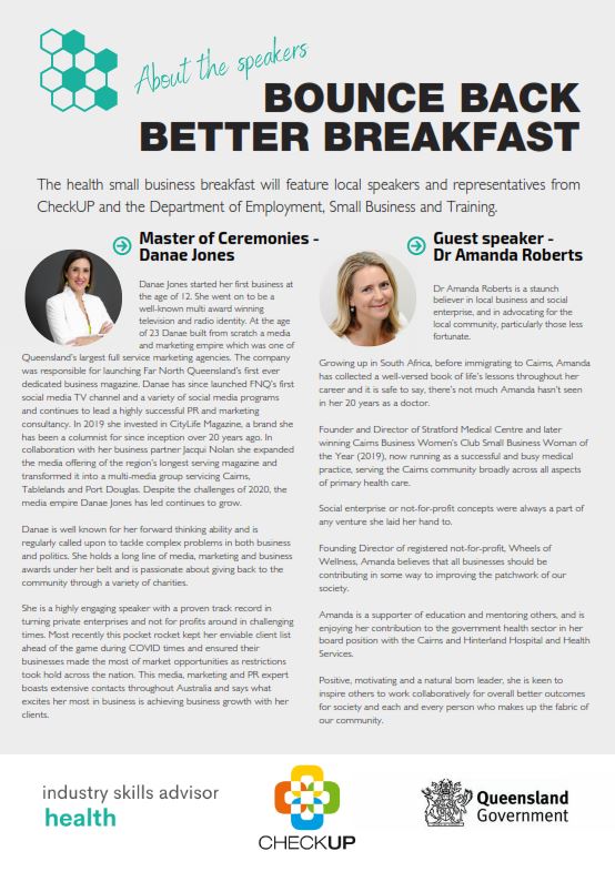 Bounce Back Better Breakfast – Friday 21st May in Cairns – for Health Small Business – by Amanda Griffiths