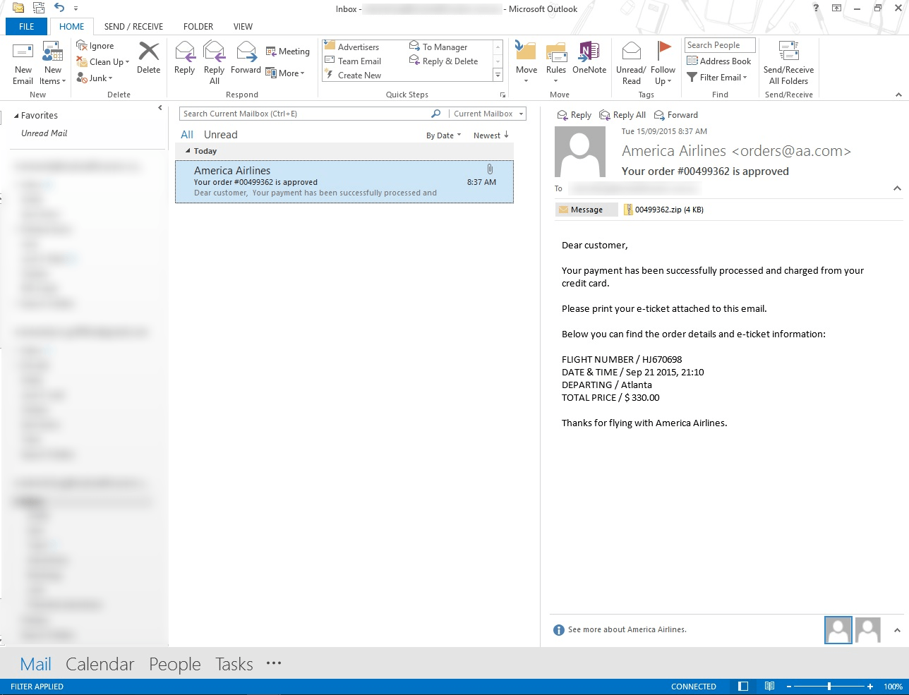 • If there is an attachment check to see what type of attachment it is. In nearly all cases, unless you recognise the sender. Never open up zip files or click on links in the email body.
