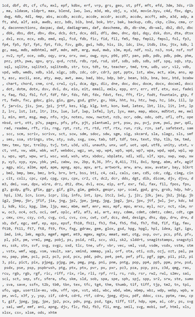 In earlier versions I limited itself to typical useful files. This is a list of the files that some of the earlier versions scanned for and encrypted.