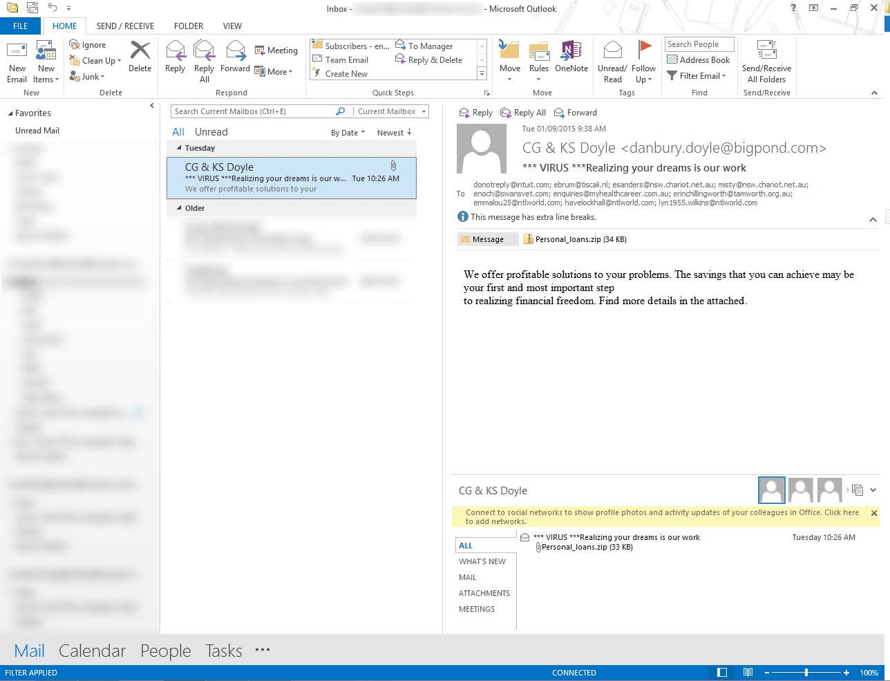 These programs are written to target users in one of two ways. By exploiting holes in a web browser when you visit an unsafe website or via email. Either way in most business environments emails are the more likely ways to get hit. The emails look and feel very legitimate and are usually in the form of a electricity bill, or a resume but can be anything that a person will most likely open even letters from the Australian Federal Police! Sometimes the Malware isn’t in the email itself but will be hidden on a website that the email asks you to visit to say claim the parcel that Australia Post couldn’t deliver to you! Looks and sounds very legitimate no? Very clever.